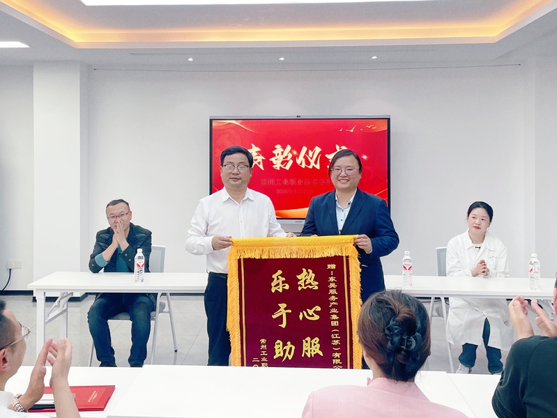 邢凱嶺介紹了學生社區近期兩起突發事件的應急處置情況。三位宿管員在處置過程中沉著冷靜,舉措得當,有效避免了學生的人身傷害。數字商務學院、信息工程學院對宿管員的現場處置給予充分肯定和高度評價。檀祝平代表學校向蘇東吳常州分公司贈送“樂于助人 熱心服務”錦旗。