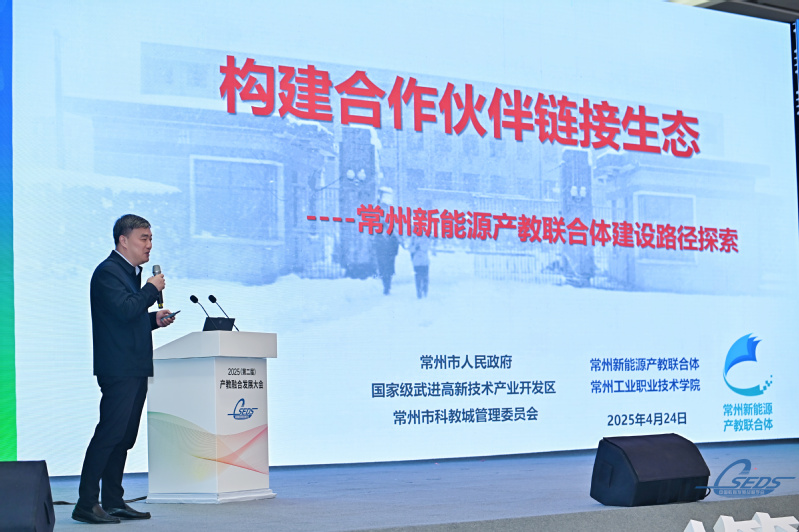 4月24日,2025年(第二屆)產(chǎn)教融合發(fā)展大會(huì)在四川瀘州舉行。大會(huì)以“構(gòu)建產(chǎn)教融合新格局,賦能新質(zhì)生產(chǎn)力發(fā)展”為主題,來(lái)自全國(guó)多地政府部門、教育行政部門,普通高校、職業(yè)院校、行業(yè)企業(yè)以及中央媒體的400余位嘉賓與會(huì)。作為2024年教育部產(chǎn)教融合、校企合作典型案例學(xué)校代表,我校黨委書記席海濤受邀參加并作常州新能源產(chǎn)教聯(lián)合體建設(shè)典型案例主題報(bào)告。