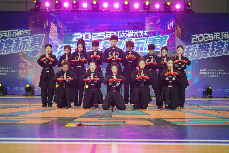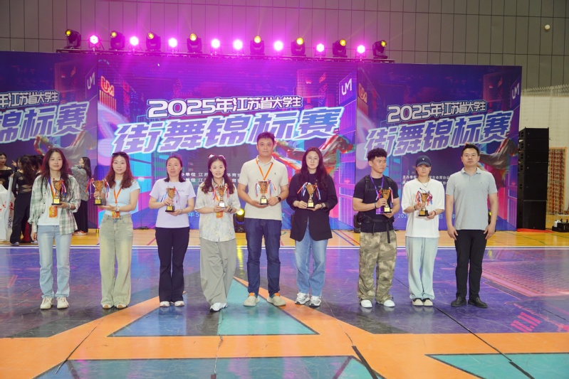 本次賽事吸引了全省45所高校、近千名師生踴躍參與,成為江蘇省參賽規(guī)模最大、參賽人數(shù)最多的大學生街舞錦標賽。我校街舞隊在教練畢先超、周益的悉心指導下,經(jīng)過激烈比拼,憑借卓越的表現(xiàn),最終榮獲團體總分第一名。