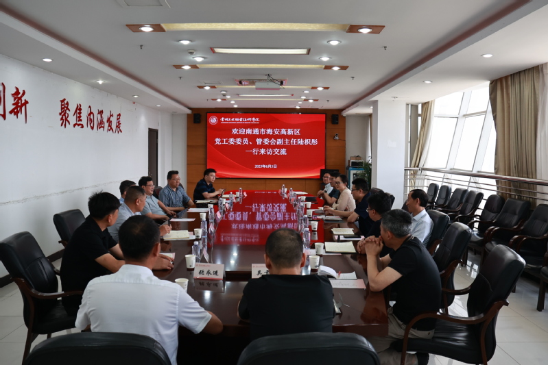 6月5日,南通海安高新區黨工委委員、管委會副主任陸枳彤率政企校聯合代表團蒞臨我校考察交流產教聯合體建設工作。校黨委書記席海濤出席,會議由副校長檀祝平主持。