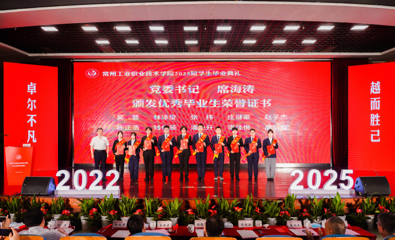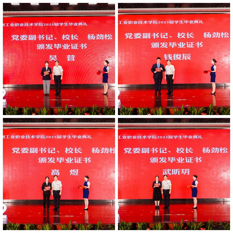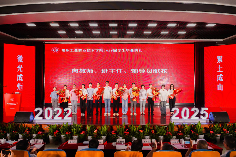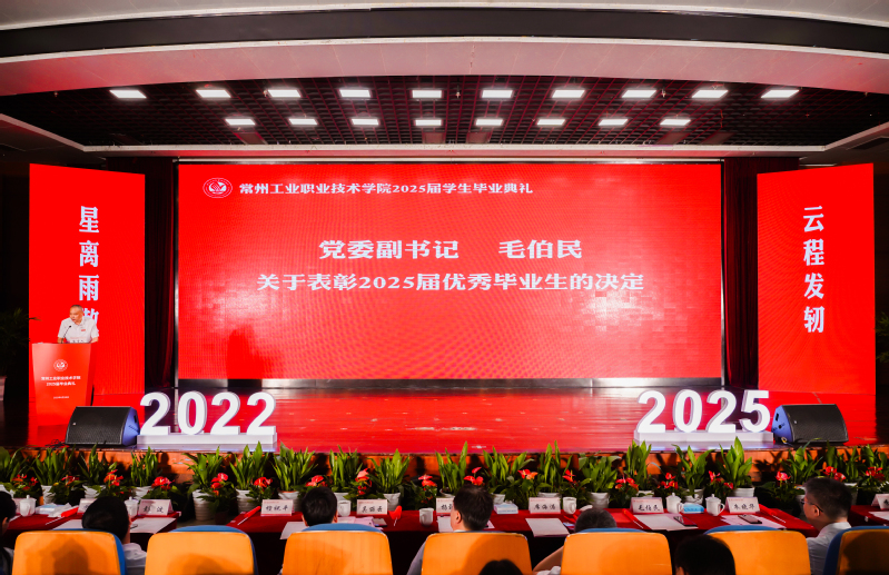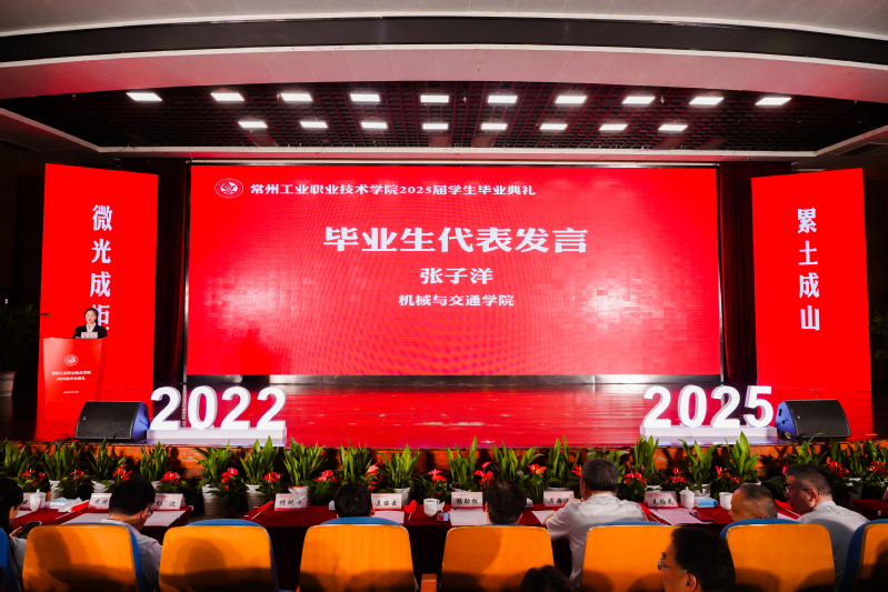 校長楊勁松為畢業生代表頒發畢業證書,并以《云路發軔騁懷天地經緯,鴻途肇興躬行赤子丹心》為題給全體2025屆畢業生上了最后一堂思政課。他寄語全體畢業生要立鴻鵠志,激揚“愿以此身長報國”的青春力量;要擔時代責,綻放“關關難過關關過”的青春風采;要譜奉獻曲,厚植“且將歲月贈山河”的青春情懷。他強調,人生最浪漫的事莫過于“祖國需要時,你們正青春”,希望全體畢業生帶著“精技立身”的堅定抱負,邁向更加壯闊的天地,將朝氣與熱忱化作逐夢力量,書寫下屬于常工業學子的輝煌答卷。