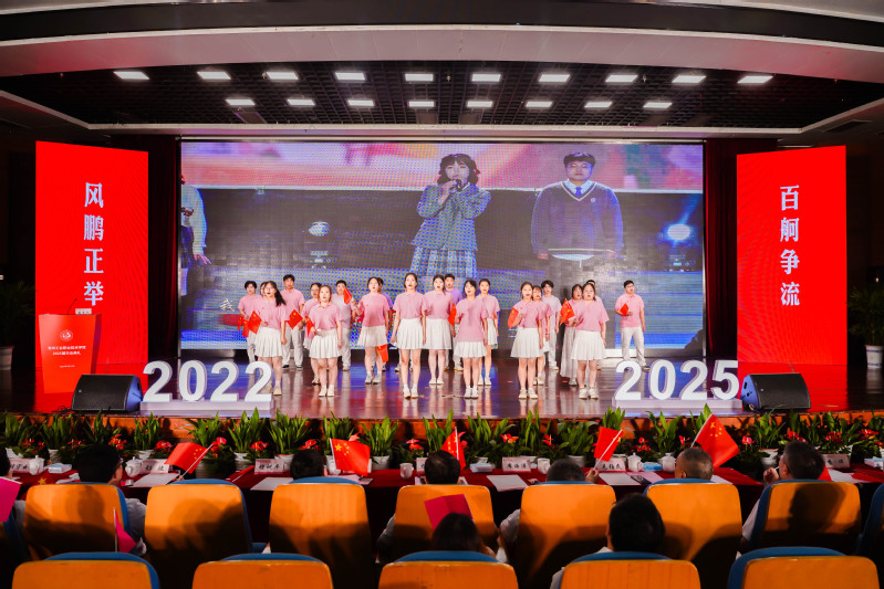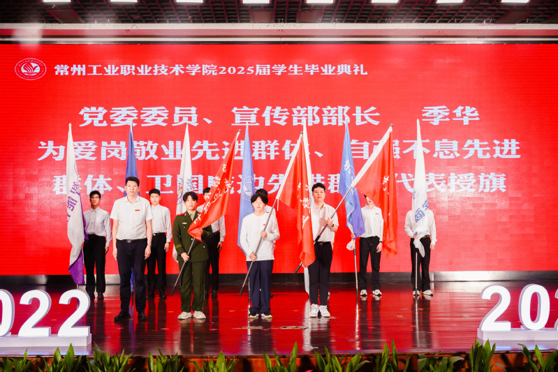 黨委副書記毛伯民宣讀了《關于表彰2025屆優秀畢業生的決定》。黨委委員、副校長吳麗云宣讀了《關于聘任2025屆校友聯絡員的決定》。黨委委員、紀委書記朱曉華宣讀了《關于表彰2025屆畢業生先進群體的決定》。黨委委員、宣傳部部長季華為“愛崗敬業”先進群體、“自強不息”先進群體、“衛國戍邊”先進群體代表授旗。