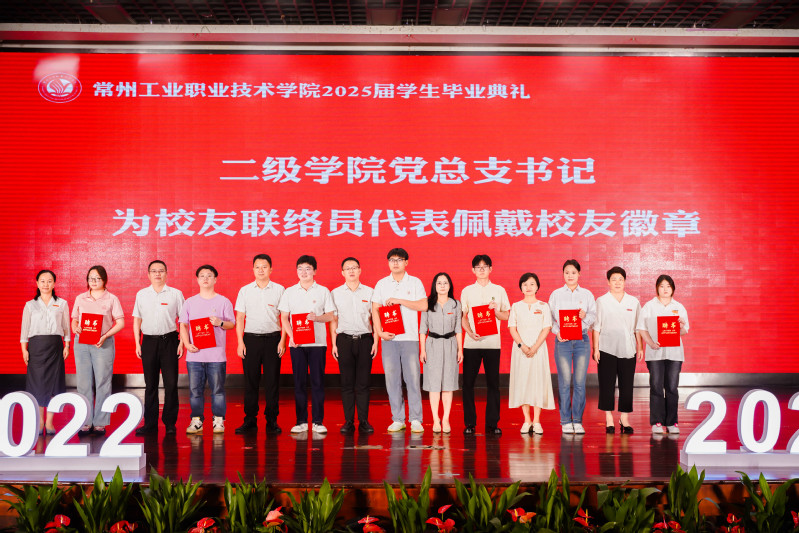 各二級學院黨總支書記為2025屆校友聯絡員代表佩戴校友徽章。