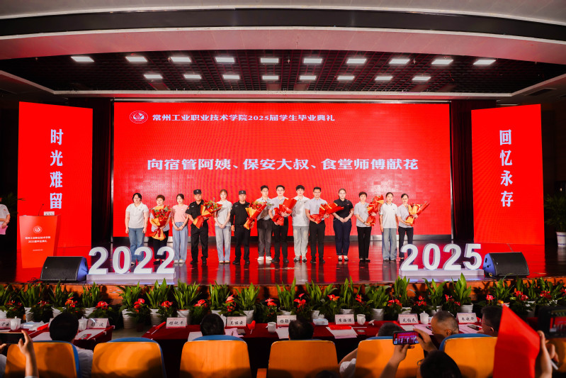 畢業典禮還舉行了學生獻唱以及畢業生代表向教師、班主任、輔導員代表、宿管阿姨、保安大叔、食堂師傅獻花等活動。