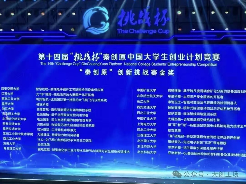 從校賽到省賽,最后進軍國賽,張偉業團隊如同項目名一般“力挽狂瀾”,勢如破竹,從全國2700余所高校300多萬名參賽者中殺出重圍,最終斬獲“秦創原”創新挑戰專項賽全國金獎,實現了我校在該項賽事上的歷史性突破。獲獎名單上,在眾多“雙一流”本科高校的環繞之中,“常州工業職業技術學院”的校名與浙江大學、西安交通大學等名校比肩而立,更顯耀眼奪目。