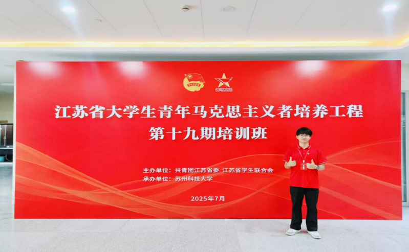 近日,我校團學骨干、24電氣自動化335班闕少杰同學通過遴選,赴蘇州參加由共青團江蘇省委、江蘇省學生聯合會舉辦的江蘇省大學生青年馬克思主義者培養工程(簡稱“青馬工程”)第十九期培訓班。