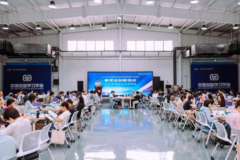8月11日,2025年江蘇省高職院校教師培訓項目高職教育熱點專項培訓(教學法創新培訓)在我校舉辦。本次培訓由江蘇省教育廳、江蘇省高等職業教育教師培訓中心主辦,我校和中德創新學習學院承辦。培訓特邀德國巴登符騰堡州立教師進修學院托馬斯?胡格教授,現場為學員們解析職業教育人才培養體系的構建邏輯。江蘇省教育廳職教處處長馬萬全一行蒞臨指導,兄弟院校領導出席活動。來自全省多所高職院校的100余名教師參與為期6天的系統性、實踐性培訓。