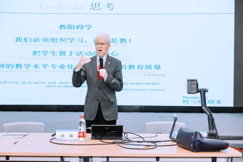 本次培訓以“創新、融合、實踐”為核心宗旨,圍繞教學法創新、信息化教學、課程思政、產教融合等高職教育熱點領域,構建“理論+實踐+反思”的培訓模式。師資團隊兼具國際視野、行業深度與教學實踐經驗,形成“中外聯動、校企協同、跨校合作”的特色陣容。其中,托馬斯?胡格教授作為核心授課專家,以其深耕職業教育領域數十年的教學經驗,從行動導向教學原則出發,通過案例剖析與互動研討的方式,為學員們解析職業教育人才培養體系的構建邏輯。