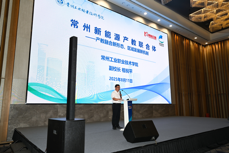 檀祝平受邀作主題發(fā)言。他詳細(xì)介紹了國家級常州新能源產(chǎn)教聯(lián)合體概況,從建設(shè)背景、特色做法和建設(shè)成效等方面深入探討了行業(yè)產(chǎn)業(yè)發(fā)展與人才培養(yǎng)的深度融合路徑。他表示,聯(lián)合體發(fā)展建設(shè)堅持以“聯(lián)”促“合”,夯實體制機制建設(shè);以“合”促“融”,推進產(chǎn)教資源集聚;以“融”促“實”,深化協(xié)同創(chuàng)新發(fā)展。他強調(diào),未來,聯(lián)合體將持續(xù)深化“產(chǎn)學(xué)研用”一體化,以“人才鏈”升級“產(chǎn)業(yè)鏈”,以“創(chuàng)新鏈”激活“價值鏈”,賦能筑基引企、聚鏈育才,聚力數(shù)智融合,為地方乃至兩岸新能源產(chǎn)業(yè)注入更強勁的發(fā)展動能。