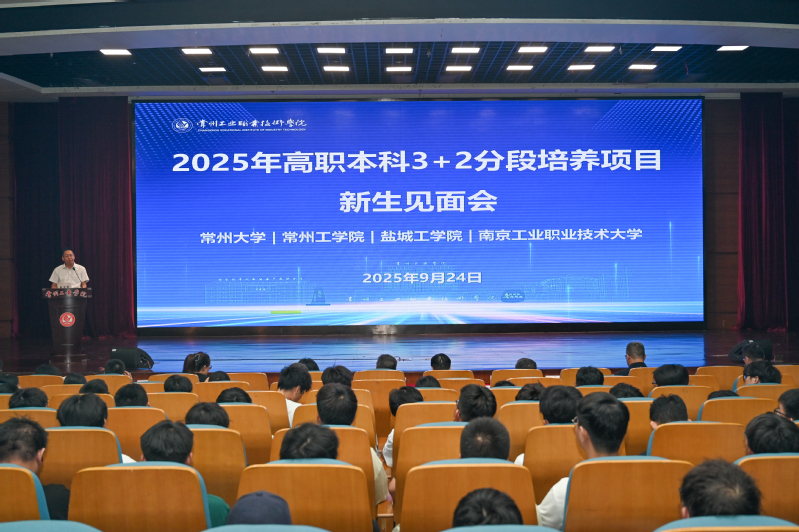 席海濤向2025級高職本科3+2分段培養項目全體新生表示歡迎和祝賀,對常州大學、常州工學院、鹽城工學院、南京工業職業技術大學對項目的支持表示感謝。他指出,學校致力于培養符合產業需求且受企業歡迎的高素質技能人才,通過與各本科院校及頭部企業的合作,建立產業學院和實訓基地,實現學生從技能到職業發展的無縫銜接,為學生提供了技能與學歷提升的雙通道。席海濤對全體新生提出了三點希望:一要腳踏實地,仰望星空。從承擔責任認真對待每門課開始,在真實項目中鍛煉解決問題的能力并保持好奇,學以致用是真正的成長。二要守住初心,不懼創新。大膽嘗試,跨界融合,誠信立身,創新思維,走得更遠。三要專注技能,擁抱團隊。堅持優勢,做好規劃,積極參與,與人為善,追求卓越,成為既有硬實力也有高情商的未來人才。