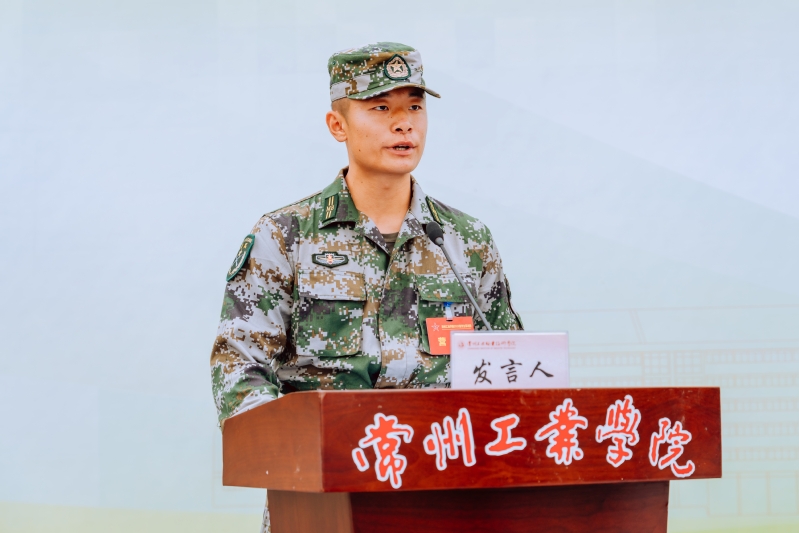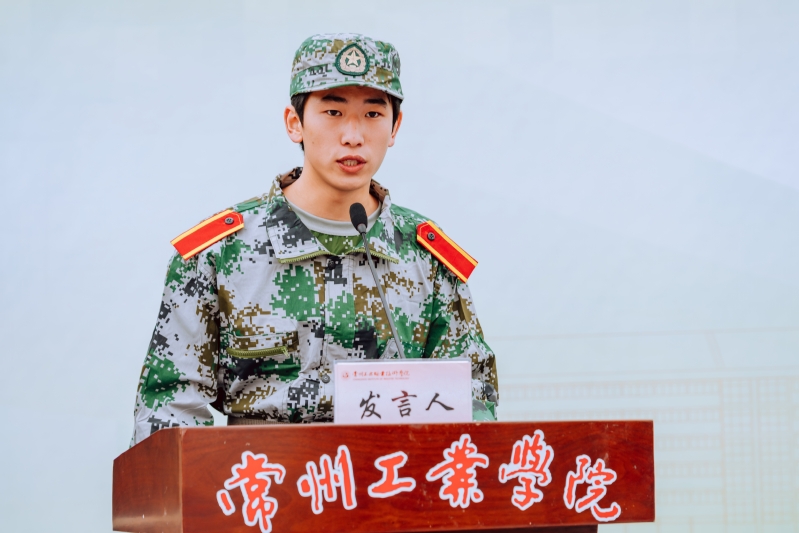 受訓(xùn)學(xué)員代表、藝術(shù)創(chuàng)意學(xué)院25環(huán)藝632班陳自信同學(xué)發(fā)言。他立志以飽滿的熱情、堅定的信念投入到軍訓(xùn)中,在這段難忘的時光里磨煉意志、凝聚力量,用青春的汗水書寫精彩篇章。