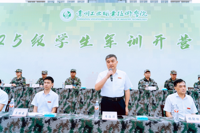 席海濤宣布2025級學(xué)生軍訓(xùn)開營。