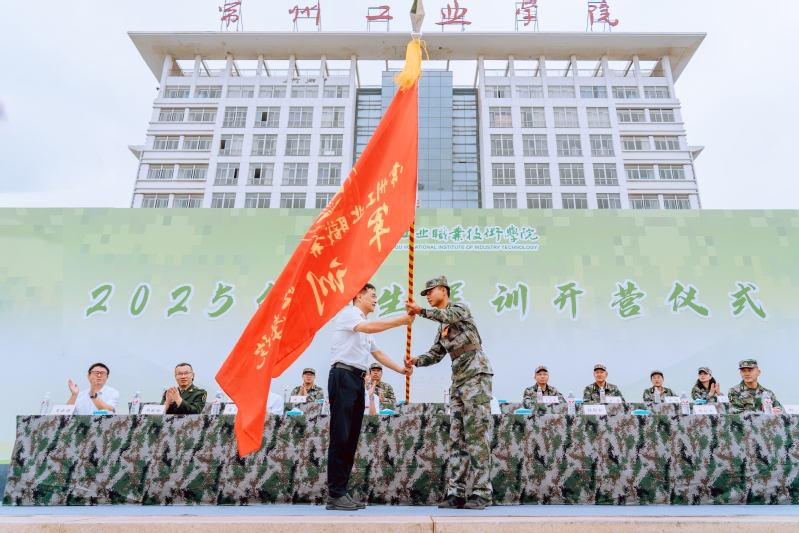 楊勁松向2025級新生軍訓(xùn)團(tuán)授旗。