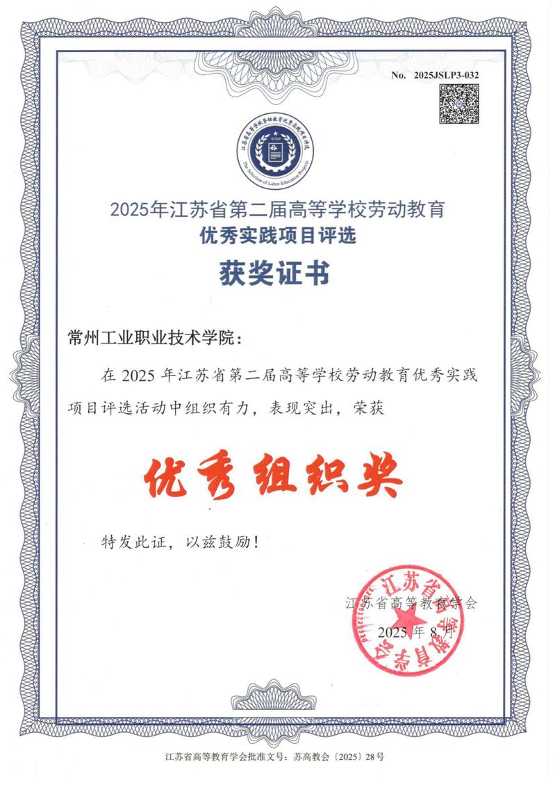 近日,江蘇省高等教育學會2025年高等學校勞動教育優秀實踐項目評選結果出爐,我校信息工程學院何濤、袁凱烽, 智能控制學院夷文玉、蔣金偉的項目獲一等獎,機械與交通學院馮莉的項目獲二等獎。同時,我校獲評江蘇省第二屆高等學校勞動教育優秀實踐項目評選活動優秀組織獎。