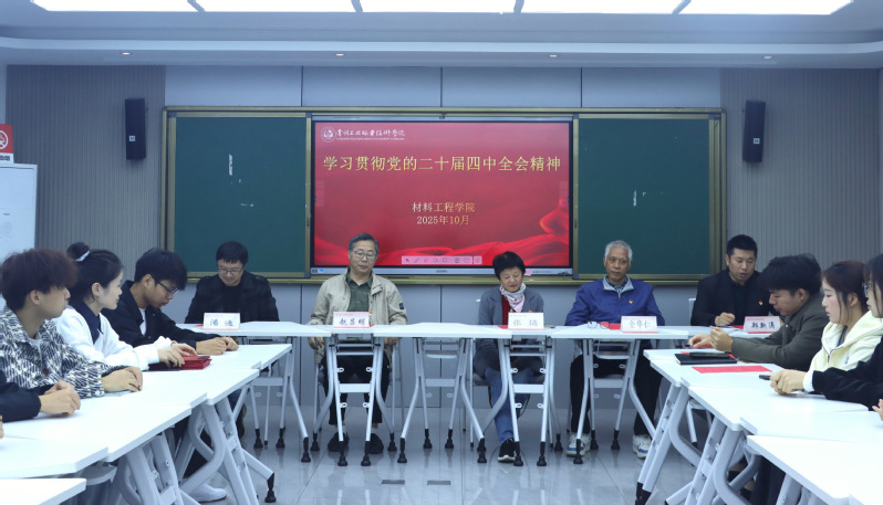 為深入學(xué)習(xí)貫徹黨的二十屆四中全會精神,凝聚青年力量投身中國式現(xiàn)代化建設(shè),10月29日下午,材料工程學(xué)院關(guān)工委聯(lián)合學(xué)生黨支部舉辦“學(xué)習(xí)貫徹黨的二十屆四中全會精神”專題學(xué)習(xí)會暨黨建輔導(dǎo)員聘任儀式。學(xué)校關(guān)工委老同志張燏、金華仁和趙呂明出席會議,學(xué)院黨總支副書記潘逸、分團委書記鄭新濤、輔導(dǎo)員周宇、韓波、曹越及青年學(xué)生代表參會,共同開啟了一場思想引領(lǐng)與使命傳承的生動實踐。