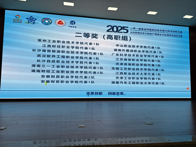 11月28-30日,2025“一帶一路”暨金磚國家技能發展與技術創新大賽之業財數據應用與管理(產教融合方向)賽項全國總決賽在湖南落幕。我校數字商務學院大數據與會計專業團隊憑借扎實的專業功底、默契的團隊協作和出色的實戰能力,從眾多參賽隊伍中脫穎而出,斬獲二等獎第一名的優異成績,指導老師姚少雯、李晶榮獲“優秀指導教師”稱號,學校獲評“優秀組織獎”。