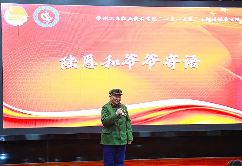 隨后,陸恩和老爺爺寄語青年要珍惜當下和平生活,牢記先輩囑托,將個人理想融入國家發展大局,以青春之我守護家國之安。現場還通過情景演繹的形式,再現了學院學子的青春擔當:有人奔赴新疆庫爾勒投身西部計劃,在基層一線書寫奉獻故事;有人投身國防事業,在艦艇之上守護萬里海疆;有人勇闖應急救援一線,與死神賽跑守護生命安全,生動展現了當代青年傳承精神、勇擔使命的鮮活模樣。