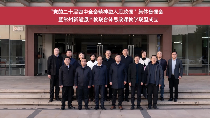 12月9日,“黨的二十屆四中全會精神融入思政課”集體備課會暨常州新能源產(chǎn)教聯(lián)合體思政課教學(xué)聯(lián)盟成立儀式在我校舉行。會議聚焦推動黨的創(chuàng)新理論有機融入“習(xí)近平新時代中國特色社會主義思想概論”課程教學(xué),深入探討了產(chǎn)教融合背景下協(xié)同育人新機制。我校校長王志華、黨委副書記吳麗云、副校長姚慶文、紀委書記朱曉華、副校長檀祝平、副校長蔣正炎等校領(lǐng)導(dǎo)出席會議并作重要指導(dǎo)。來自常州新能源產(chǎn)教聯(lián)合體成員院校的思政課教學(xué)負責(zé)人、教師代表及我校馬克思主義學(xué)院全體教師齊聚一堂,共商思政課改革創(chuàng)新大計,共繪協(xié)同育人新藍圖。會議由馬克思主義學(xué)院副院長李飛主持。