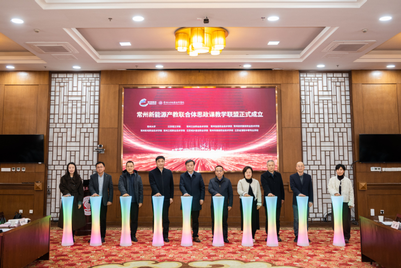 在全體與會人員的共同見證下,由我校牽頭,常州大學(xué)、江蘇理工學(xué)院、常州信息職業(yè)技術(shù)學(xué)院、常州機電職業(yè)技術(shù)學(xué)院、常州工程職業(yè)技術(shù)學(xué)院、常州紡織服裝職業(yè)技術(shù)學(xué)院、江蘇城鄉(xiāng)建設(shè)職業(yè)學(xué)院、江蘇省溧陽中等專業(yè)學(xué)校、常州市高級職業(yè)技術(shù)學(xué)校共同參與的“常州新能源產(chǎn)教聯(lián)合體思政課教學(xué)聯(lián)盟”正式成立。