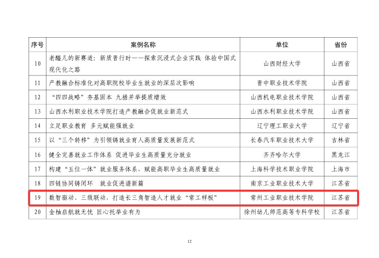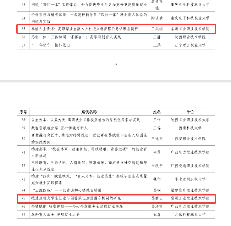我校申報的集體典型案例《數智驅動、三級聯動,打造長三角智造人才就業“常工樣板”》,構建了“校—院—企”三級就業服務體系,依托智慧就業平臺整合崗位資源,通過大數據分析實現崗位信息精準推送,聯動二級學院深耕行業需求、企業參與人才培養全過程,精準對接長三角地區智能制造產業人才需求,為區域產業升級輸送了大批技術技能型人才,打造了具有高職特色的就業服務新模式。
