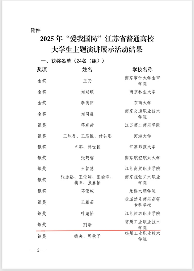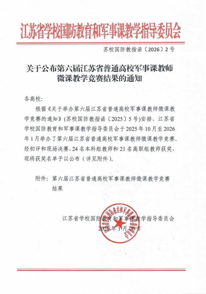 近日,2025年度江蘇省國(guó)防教育和軍事課教學(xué)系列賽事結(jié)果陸續(xù)揭曉,我校師生喜獲多項(xiàng)佳績(jī),充分展現(xiàn)了我校國(guó)防教育的扎實(shí)成效與師生昂揚(yáng)向上的精神風(fēng)貌。
