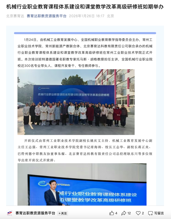 作者:北京賽育達來源:賽育達職教資源服務平臺發(fā)布時間:2026年01月27日點擊數(shù):117