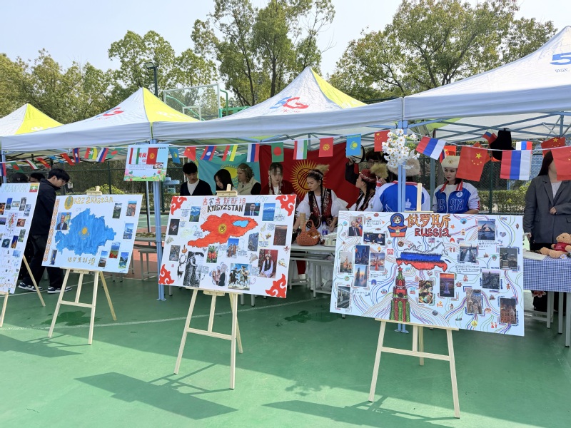 文化展示區(qū)里,各國(guó)專(zhuān)屬展板各具特色,均由留學(xué)生親手繪制完成。展板之上,俄羅斯的異域風(fēng)光、哈薩克斯坦的游牧風(fēng)情、塔吉克斯坦的高原特色、吉爾吉斯斯坦的草原文化、老撾的熱帶風(fēng)情等一一鮮活呈現(xiàn),吸引眾多師生駐足觀(guān)賞、細(xì)細(xì)品讀。大家不時(shí)與留學(xué)生交流探討,在輕松的互動(dòng)中增進(jìn)了對(duì)不同國(guó)家文化的了解與認(rèn)知。