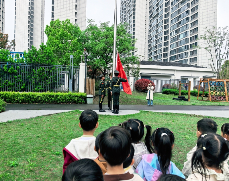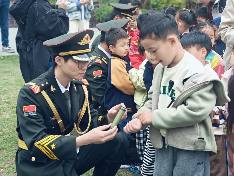 國防啟蒙,共育童心筑基石。學校國旗護衛隊和退役大學生士兵代表走進銀河云峯幼兒園,開展國防啟蒙教育活動?;顒釉谇f嚴的升國旗儀式中拉開序幕,護衛隊員步伐鏗鏘、英姿颯爽,為小朋友們上了一堂生動的愛國主義體驗課。隨后,退役士兵以海陸空國防模型為教具,用通俗易懂的語言講解裝備性能與國防意義,在“看、聽、觸、問”的互動中,將維護國家安全的種子播撒進幼兒心田。