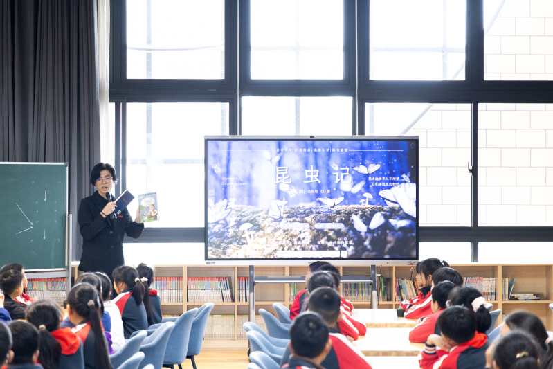 讀者協會副會長裴深溫情講述金波先生的兒童詩集《推開窗子看見你》,以“樹影、蝴蝶、笑臉”的春日意象,通過朗朗讀書聲,帶領同學們走進詩意文學世界;陳昊同學生動解讀法布爾《昆蟲記》,以科學觀察筆記揭開微觀生命奧秘,展現科學精神與人文關懷的統一。小同學們積極互動,現場氣氛熱烈。分享結束后,汪洋為學生代表贈送了一批優質少兒圖書,書香傳遞間定格溫馨美好瞬間。