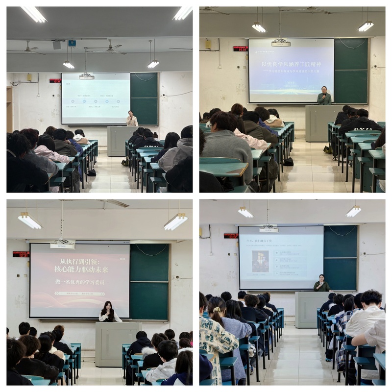 首期培訓中,吳晶津以《從執行到引領:核心能力驅動未來》為題,引導學委轉變工作思維,從基礎事務執行者轉型為班級學風建設、同伴共同成長的骨干引領者,全面錘煉崗位綜合履職能力。楊晗圍繞《明職責?精業務?強服務》,結合全校教學管理與班級日常實務,細致規范學情反饋、教學對接、考勤管理、通知傳達、師生雙向溝通等核心工作,厘清權責邊界、優化工作流程,切實提升學委履職服務規范化水平。