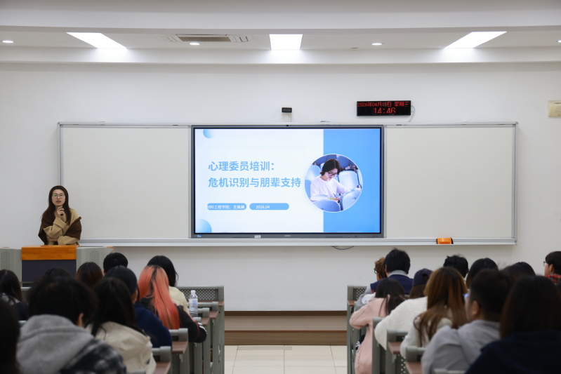 開班儀式后,第一期授課環節有序開展。材料工程學院心理輔導員王姝嫻以“心理委員危機識別與朋輩支持”為主題,結合大學生常見心理危機案例,詳細講解了心理危機的識別方法、朋輩陪伴的技巧和危機干預的基本流程。隨后,機械與交通學院心理輔導員王奇圍繞“心理委員工作實務與自我心理養護”展開授課,既拆解了日常心理工作的具體內容、工作方法,也分享了心理委員自我情緒調節、避免職業耗竭的實用技巧,兼顧了履職能力與自我關懷。