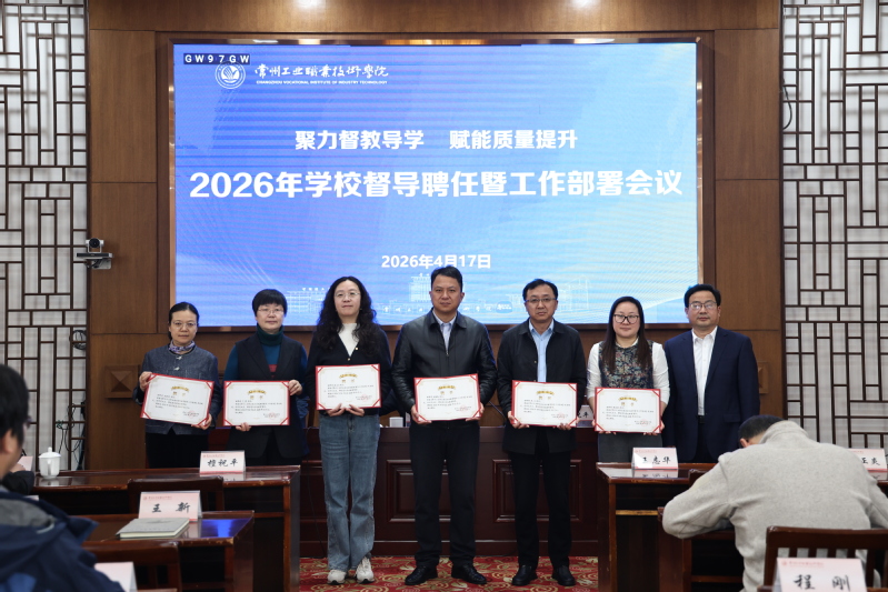 4月17日,我校召開2026年督導聘任暨工作部署會議。校長王志華,副校長檀祝平、蔣正炎出席會議,會議由質量監督與控制處處長王新主持。