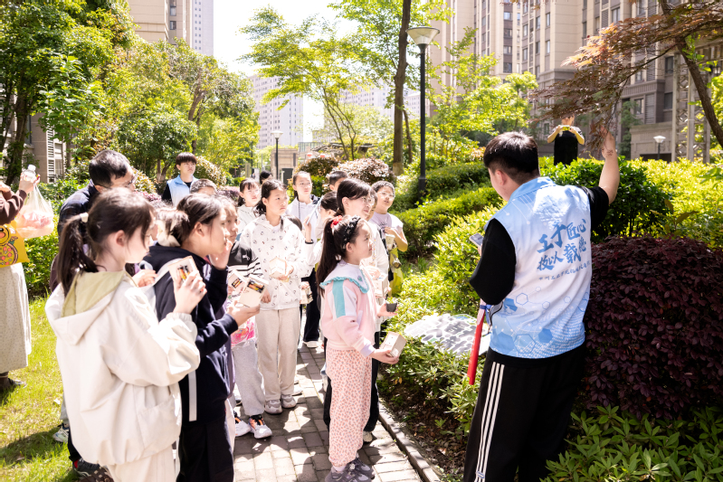 室內科普結束后,志愿者帶領小朋友走進社區戶外空間,現場講解社區綠植的種類、生長歷史與生態功能,將學以致用、環境保護與“行走的思政課”有機串聯。通過理論講解、動手實踐、實地觀察相結合的方式,讓環保理念在青少年心中落地生根。